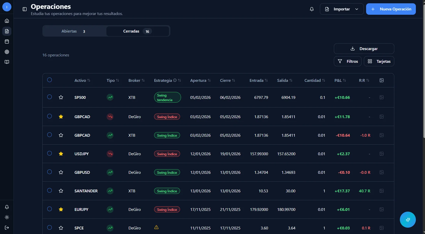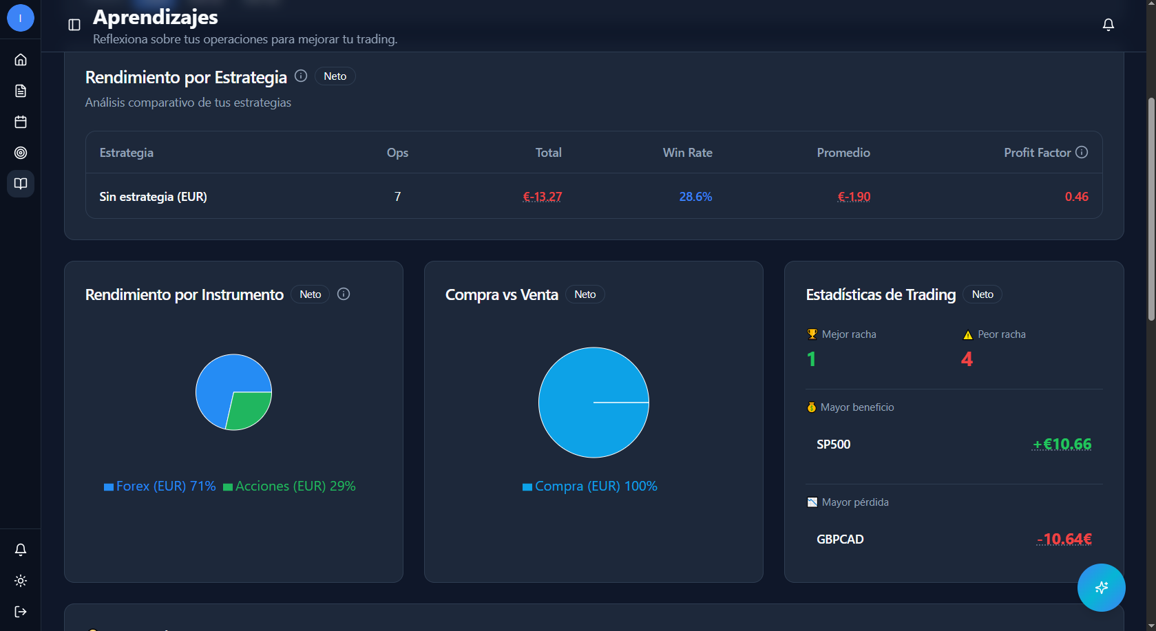Ten un control preciso de tus operaciones de trading y aprende de tus aciertos.