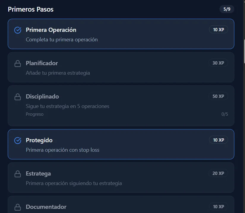 Como incentivo para tu aprendizaje en tu operativa de trading, ofrecemos recompensas y reconocimiento por el uso constante y efectivo del diario de trading: